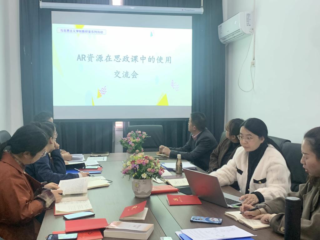 为了提高教学效果和备课水平,我院积极探索教学方法改革,优化教学手段,努力探索将AR技术与思政课教学相结合的新路径。教研室主任李晶晶老师就AR资源在《毛泽东思想和中国特色社会主义理论体系概论》和《中国近代史纲要》两门课中的使用情况进行了介绍,老师们就线上教学情况进行了热烈的交流和讨论。