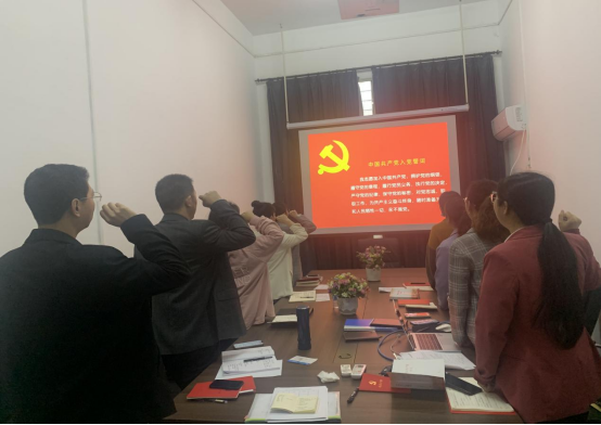 在田丹老师的领读下,全体党员重温了入党誓词,随后集中缴纳了党费;党员老师们集体重温了党章第五章党的基层组织的部分内容。接着马克思主义学院党支部布置了本月党史教育学习指定内容,并提出了学习要求。然后,全体党员老师集中观看了习近平在庆祝中国共产主义青年团成立100周年大会上的讲话视频。