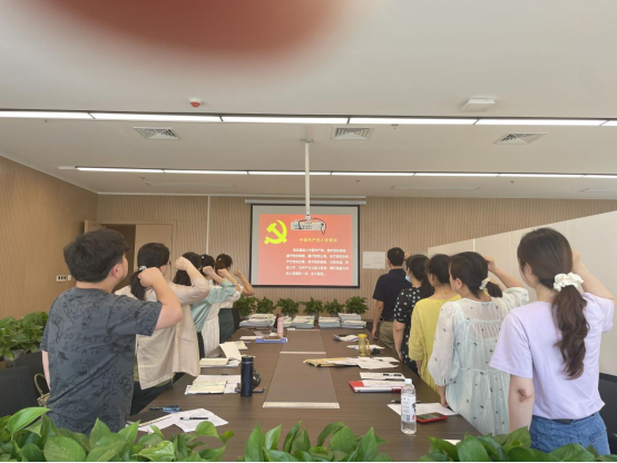 在吴勇老师的领读下,全体党员重温了入党誓词,随后集中缴纳了党费;接着党员老师们集体学习了《中国共产党章程》第五章《党的基层组织》的部分内容,听取了学院副教授佘时珍老师与大家分享的微党课。