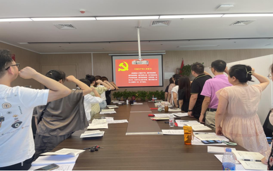 在黄梓月老师的领读下,全体党员重温了入党誓词,随后集中交纳了党费,并集体研读了《中国共产党纪律处分条例》的部分内容。