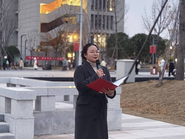 马克思主义学院教师张佳莹则在讲话中以中国式现代化的成功历程,鼓励新时代青年学生要拥有更强志气、更硬骨气、更足底气,奔赴强国之约,以小我之萤火汇聚民族之火炬,为中华民族的伟大复兴贡献青春力量!