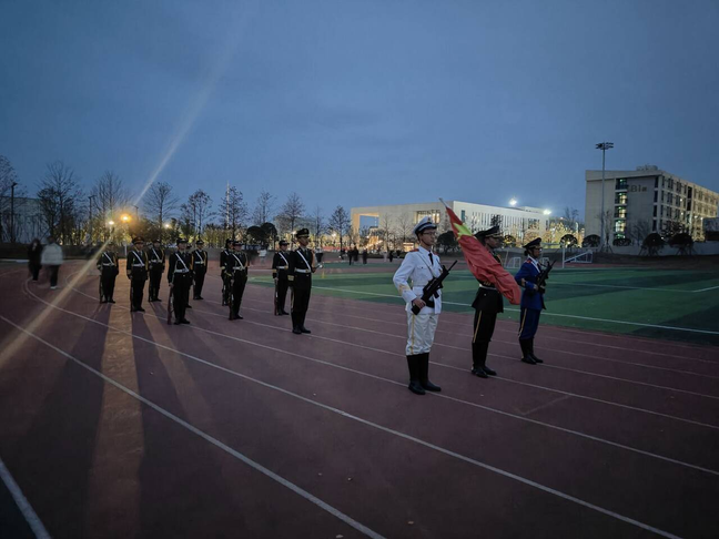 本网讯 12月23日清晨,马克思主义学院在田径场举行了“挺膺青春之姿 奔赴强国之约”主题升国旗仪式,马克思主义学院全体师生参加,仪式由思政5241班刘昊同学主持。