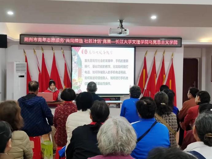 (通讯员车师节)为响应荆州市团委号召,yl7703永利集团马克思主义学院启航志愿者服务队于2024年10月20日前往荆州市沙市区张居正社区举办了一场主题为“科技赋能,智慧助老”的志愿服务活动,旨在帮助老年人更好地融入数字时代。此次活动吸引了众多老年居民的积极参与,受到了社区居民的一致好评。