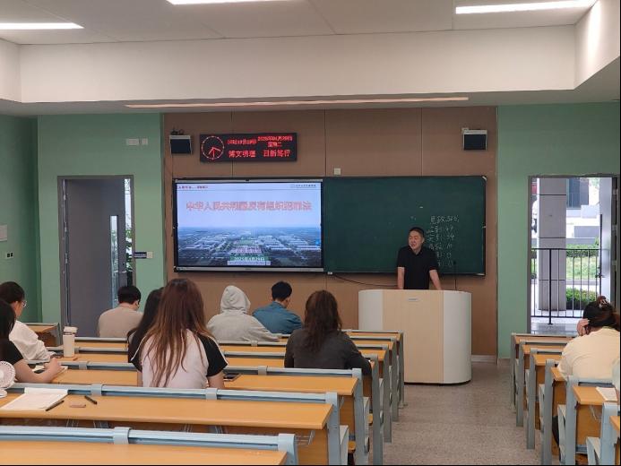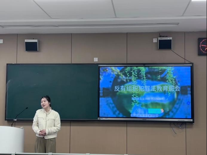 在A-110s教室,思政5231班班主任郭世德从立法背景切入,结合典型案例对法律条文要义进行深入解读,着重剖析有组织犯罪对基层治理和社会稳定的深层危害。与此同时,思政5241班通过视频解析、互动问答等形式开展学习,班主任史苗苗以校园贷、网络诈骗等大学生易涉场景为例,引导学生树立法治思维。