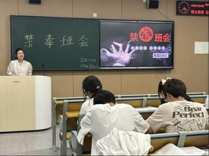 (通讯员:覃庆耀)2025年6月22日晚七点,马克思主义学院思政5241班、5231班分别在自习室A-217S和A-110s开展禁毒宣传主题教育班会。