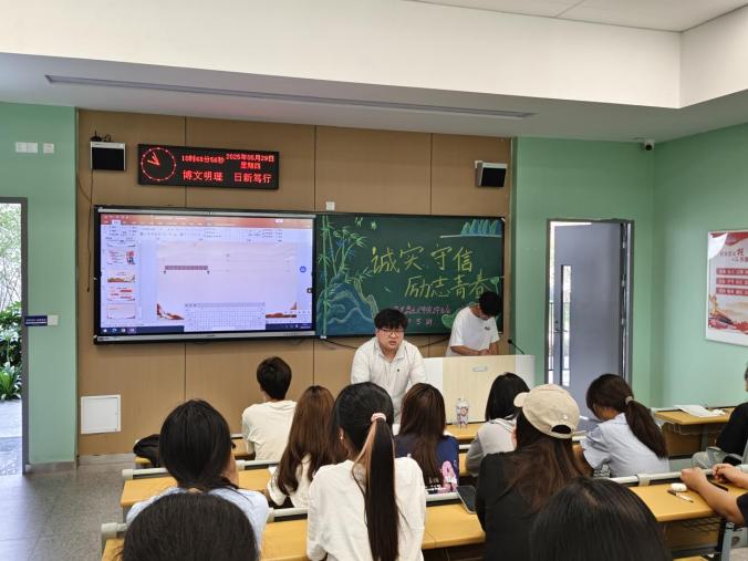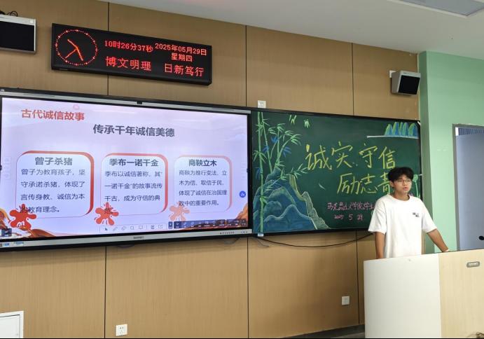 (通讯员 陈温妍)2025年5月29日上午,马克思主义学院在A-110s教室举办“诚实守信,励志青春”主题教育讲座,辅导员李天赐老师主持,马克思主义学院全体学生参与。