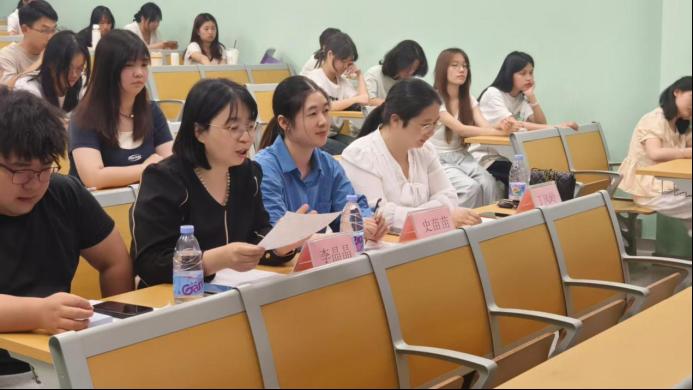 决赛现场,来自马克思主义学院的三位专业评委老师史苗苗、李晶晶、丁风岭从教学设计、理论深度、表达逻辑等维度进行专业点评。选手们展现稳健台风与扎实理论功底,创新性融合传统文化与马克思主义理论,辅以制作精良的PPT课件。评委组建议需强化历史语境分析,避免教条化倾向,同时注重PPT内容的结构化呈现。