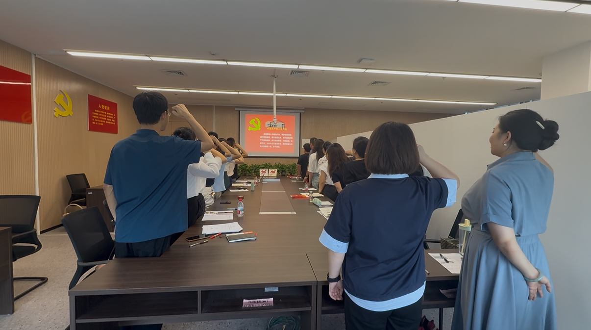 在李天赐老师的领读下,全体党员重温了入党誓词,随后集中交纳了党费,并集体研读了《中国共产党章程》第七章的部分内容。