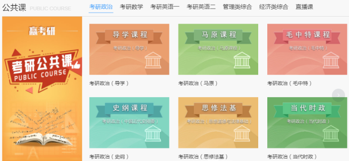 1.公共课包括:考研政治、考研数学、考研英语一、考研英语二、管理类综合、经济类综合、直播课等