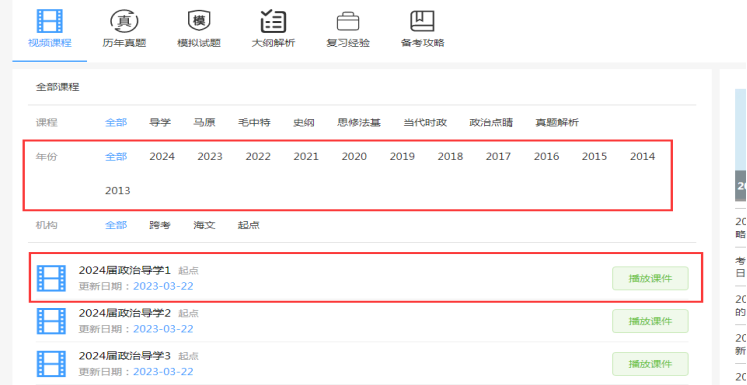 4.选择需要学习的具体课程,点击“播放课件”按钮(图11)