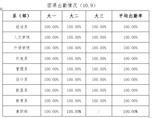 2020年10月份团内政治学习考勤情况通报