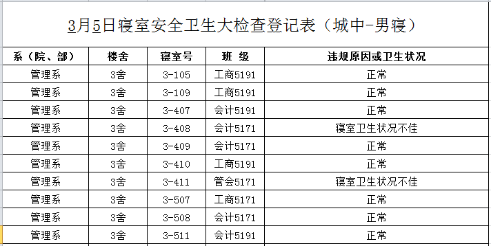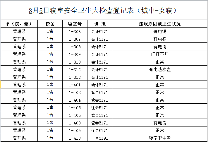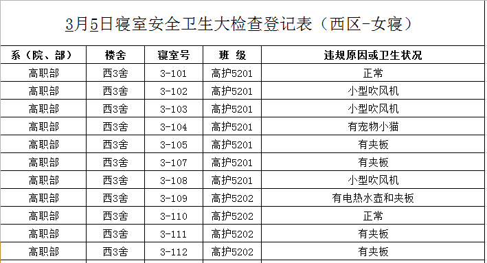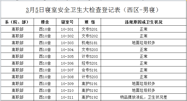 2020-2021学年第二学期第1周学工人员寝室值班通报