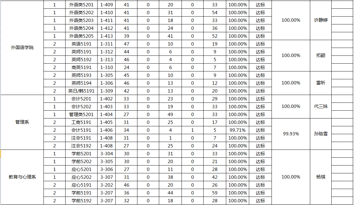 2020-2021学年第二学期第4周系(院、部)早晚自习考勤通报