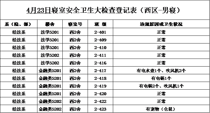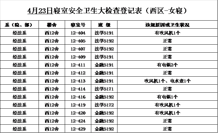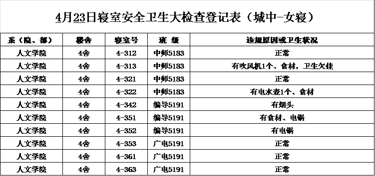 2020-2021学年第二学期第8周寝室检查结果通报