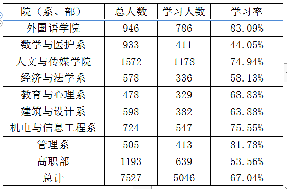 yl7703永利集团十一季第一期青年大学习各院(系、部)学习情况公示