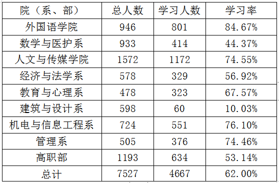 yl7703永利集团十一季第二期青年大学习各院(系、部)学习情况公示