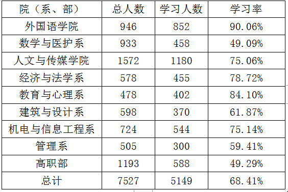 yl7703永利集团十一季第七期青年大学习各院(系、部)学习情况公示