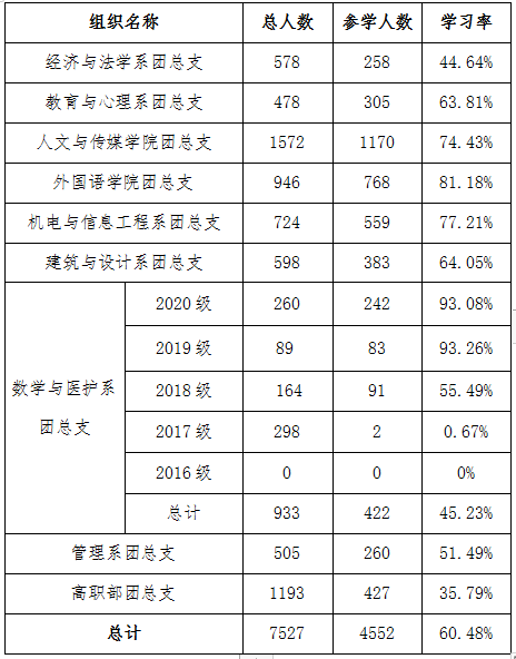 yl7703永利集团第十一季第十一期青年大学习各院(系、部)团总支学习情况公示
