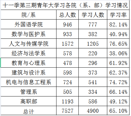 yl7703永利集团十一季第三期青年大学习各院(系、部)学习情况公示