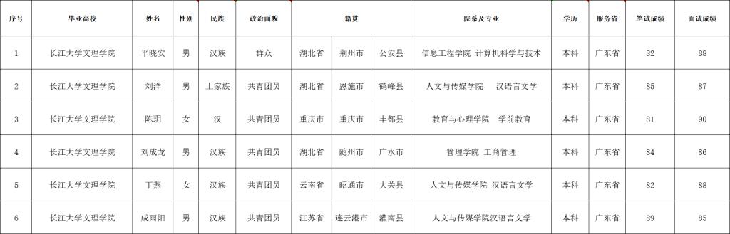 为做好2025-2026年度大学生志愿服务西部计划志愿者招募选拔工作,根据西部计划湖北省项目办招募方案要求,本着“公平、公正、公开”的原则,结合学院工作实际,经自愿报名、资格审查、笔试、面试等环节,拟确定以下6名毕业生为2025-2026年度大学生志愿服务西部计划志愿者。