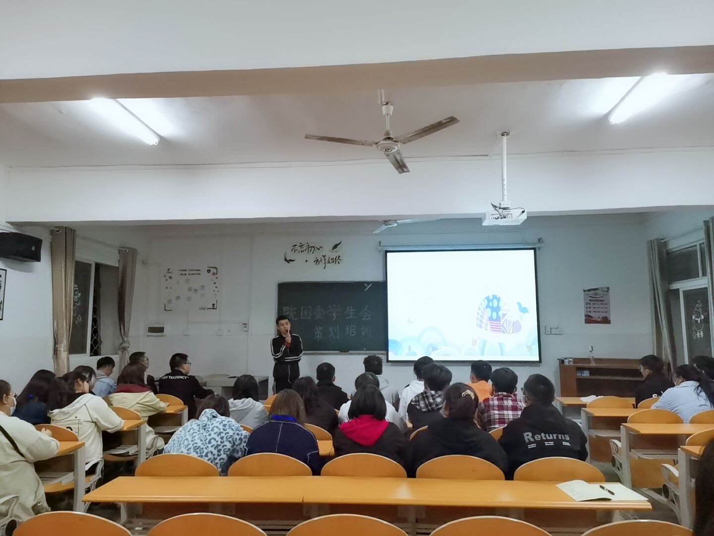 随后陈老师通过PPT为大家讲解如何写策划和总结,着重介绍了策划内容、应急预案和奖项设置,并要求学生干部们在写策划时做到六个要、四个美。同时教导大家要放心大胆去工作和做事,充分展示身为一名学生干部应有的担当和责任。