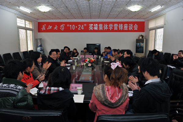 文理院长沈光明、党委书记袁先海感谢省教育厅领导对“10·24”英雄集体的关心,并表示要深入学习宣传“10·24”精神。“对英雄大学生实行多元化培养,让大家回归平常心,明白是英雄也是一名大学生,对英雄的教育恢复常态化有利于学生的健康成长。”沈光明说道。