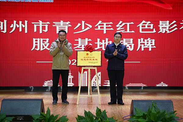 本网讯(记者 刘磊 学生记者 程丰 赵嘉丽 见习记者 朱萌)4月15日下午,荆州市青少年“红色影视”服务基地揭牌仪式在我院城中校区多功能报告厅举行。