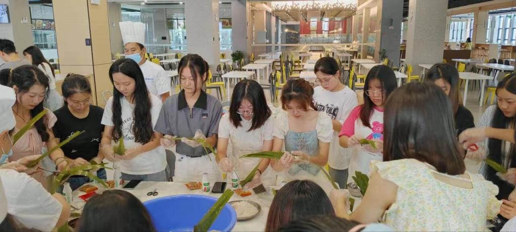 近日,院团委举办了“悠悠文化贯古今”端午节系列活动。悠悠艾草香,绵绵情意长。师生们亲手制作了粽子。碧绿的粽叶在一双双巧手中转,将粒粒芬芳馥郁的糯米尽数包裹捆扎。大家围坐一起,边学边聊,互相分享各自的文化故事和节日习俗,现场洋溢着愉快和谐的气氛。看着自己的得意之作,同学们脸上露出满满的成就感。活动现场。大家还一起制作了漆扇、进行了民俗文化小游戏。