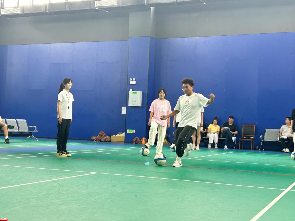 此次比赛分两组进行模拟授课,共有9位学生先后登台,展示专业技能,彰显教学风采。授课环节中,参赛学生根据新课标初中体育授课项目,围绕课程思政融入、教学仪态、语言表达、教法学法等方面展开教学讲解、示范。评委老师根据选手的教学态度、教案设计、教学组织过程和教学效果进行评分,最终决出奖项。
