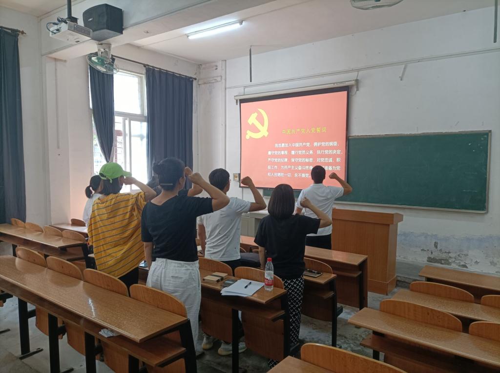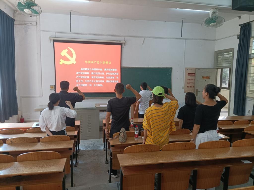 会上,王晟老师带领全体体育系党支部教师党员同志重温入党誓词。强调各位教师党员同志不仅要在学习党史、领悟党的精神上下工夫,更要积极发挥党员带头作用,坚定理想信念,时刻以一名优秀党员的标准要求自己,努力将所学的知识、领悟的精神付诸于实际行动中去,为人民服务的初心贯彻始终。
