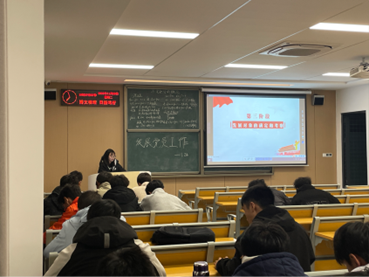 2023年11月28日,为了积极响应党的号召,让同学们形成正确的入党动机,学生党支部宣传委员陈祖芬同志走进体教5221,社体5221班在教学楼A315开展“端正入党动机”教育培训暨入党流程宣讲活动。