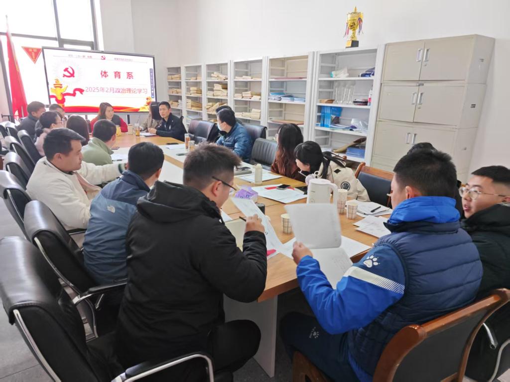 本网讯 2月27日下午2:30,体育系全体教职工在311会议室进行2月份政治理论学习,会议由教工党支部书记邱凤霞主持。