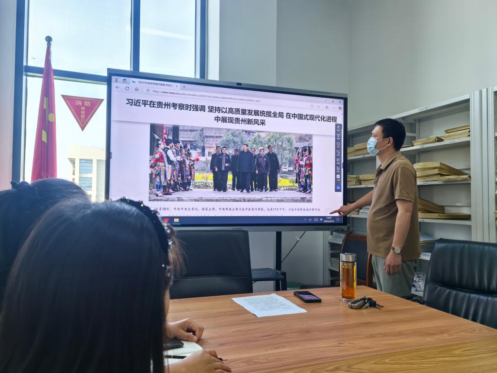 体育系党总支书记带领大家共同浏览学习了“习近平在贵州考察时强调坚持以高质量发展统揽全局,在中国式现代化进程中展现贵州新风采”以及“习近平强调解放思想改革创新奋发进取真抓实干,在中国式现代化进程中开创云南发展新局面”的新闻内容。