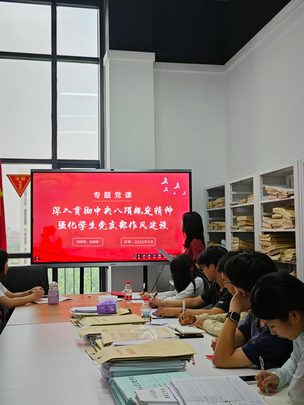 在党课的最后,赵婉君书记强调,深入贯彻中央八项规定精神,强化学生党支部作风建设,是每一位学生党员的责任和义务。她呼吁全体学生党员要以高度的政治自觉、饱满的精神状态和扎实的工作作风,深入推进作风建设,为学生党支部的发展提供坚强的纪律保障。赵婉君老师鼓励学生党员紧密团结在以习近平同志为核心的党中央周围,不忘初心,牢记使命,为培养德智体美劳全面发展的社会主义建设者和接班人而努力奋斗。