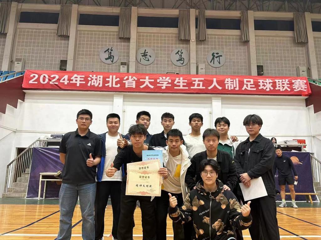 5月5日,湖北省大学生五人制足球联赛在湖北大学体育馆落下帷幕。我院足球队在教练员贺鸣杰、王晟老师的带领下,男足运动员们在赛场中奋勇拼搏,发挥出色,小组赛阶段我校以全胜战绩名列小组第一晋级淘汰赛,决赛以4:3战胜对手,最终获得本次赛事(男子校园甲组)第五名的成绩,也是我校历史最好成绩。