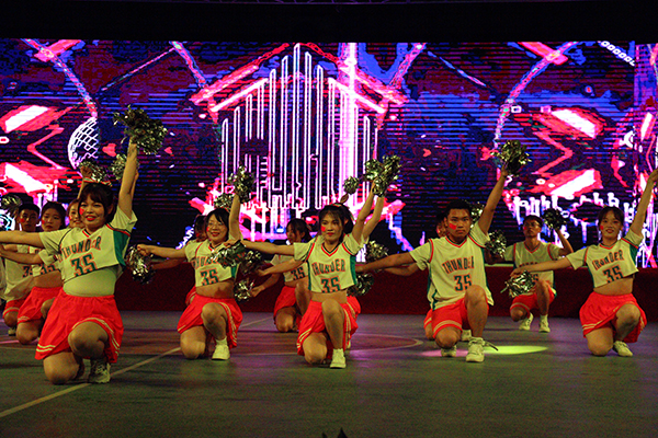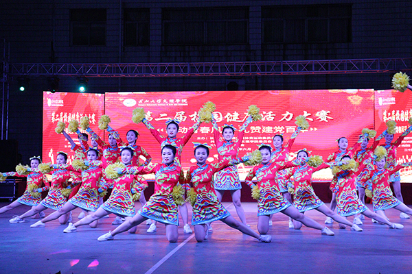 本届比赛主题是“舞动青春风采,礼赞建党百年”,经济与法学系、教育与心理系、人文与传媒学院、外国语学院、机电与信息工程系、建筑与设计系、数学与医护系、管理系、高职部等9个教学单位,依次带来了花球啦啦操、街舞啦啦操、爵士啦啦操等不同类型的节目参与比赛。180多名运动员身着统一服装,步伐整齐,精神饱满,朝气蓬勃,以明快奔放的动作舞出青春风采,用新颖别致的造型展现了力与美的结合,充分展示了我院学子昂扬向上的精神风貌。在激烈的比赛过程中,穿插了红色主旋律艺术表演。全体运动员表演了开场舞《厉害了,我的国》,青春学子用舞姿表达对党的热爱与礼赞;同学们演唱歌曲《我爱你,中国》,抒发对伟大祖国的祝福之情。