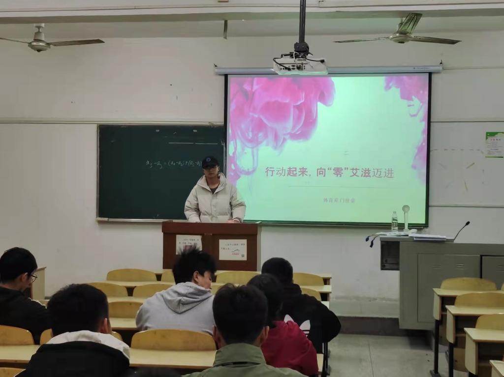 本网讯(通讯员 袁儒毅)为配合学院《关于开展防治艾滋病短视频征集评选活动的通知》,2021年11月21日体育系体教5211班在辅导员门世豪的组织下,开展了关于预防艾滋病的主题班会,本次班会主要内容是宣传预防艾滋病,关于艾滋病的传播途径,关于艾滋病的阻挡药物的知识。