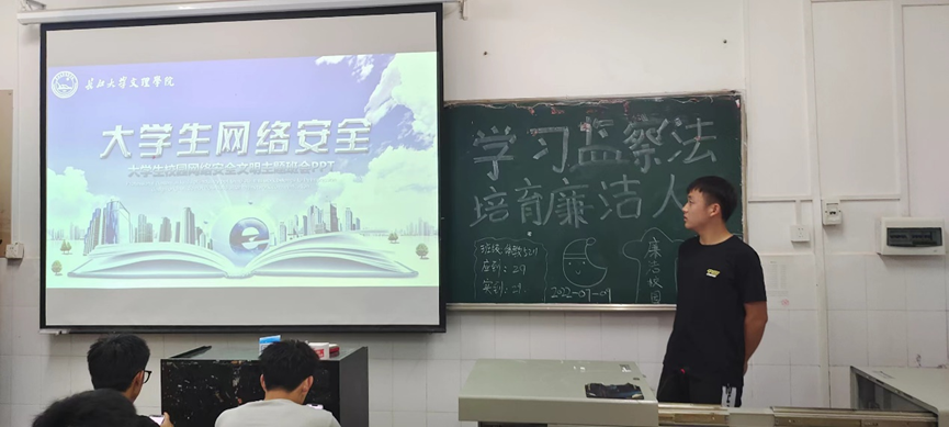 体育系于2022年9月8日开展校园网络安全文明主题班会(通讯员:袁儒毅)。安全有界,网络无边。青少年是网民的重要组成部分,培养青少年的网络安全意识是学校教育的一项重要内容。增强学生网络安全意识,提高对信息的甄别和对个人信息的保护能力,教育学生做到文明健康上网,本次班会主要围绕网络行为安全,网络交易安全,网络交友安全进行详细讲解。