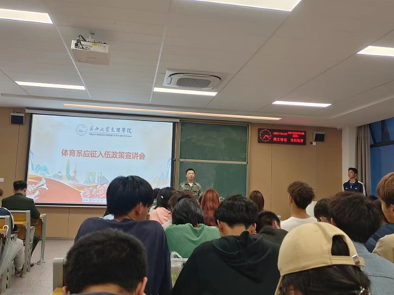 本网讯(通讯员 黄金艳)6月5日晚,体育系全体学生在教学楼C-323开展了一场别开生面的“征兵”主题动员会,邀请了我院老兵团成员来我系宣讲,教师里不断传来震耳欲聋的鼓掌声。