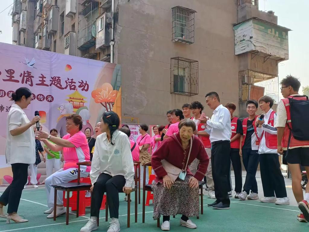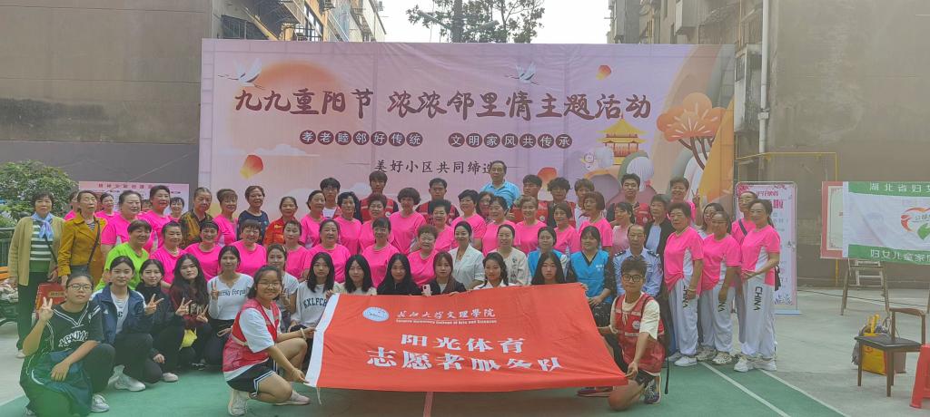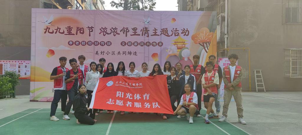 2023年10月18日,为大力弘扬中华民族尊老敬老的传统美德,欢度重阳佳节。十里庵社区在小区内广场组织开展了“浓浓‘重阳’邻里情”十里庵社区重阳节系列活动,给社区的老年朋友们送去了快乐和生活的欢笑。yl7703永利集团体育系阳光体育志愿者服务队受邀参加本次活动,为十方庵社区带来表演节目与组织老年人做游戏。