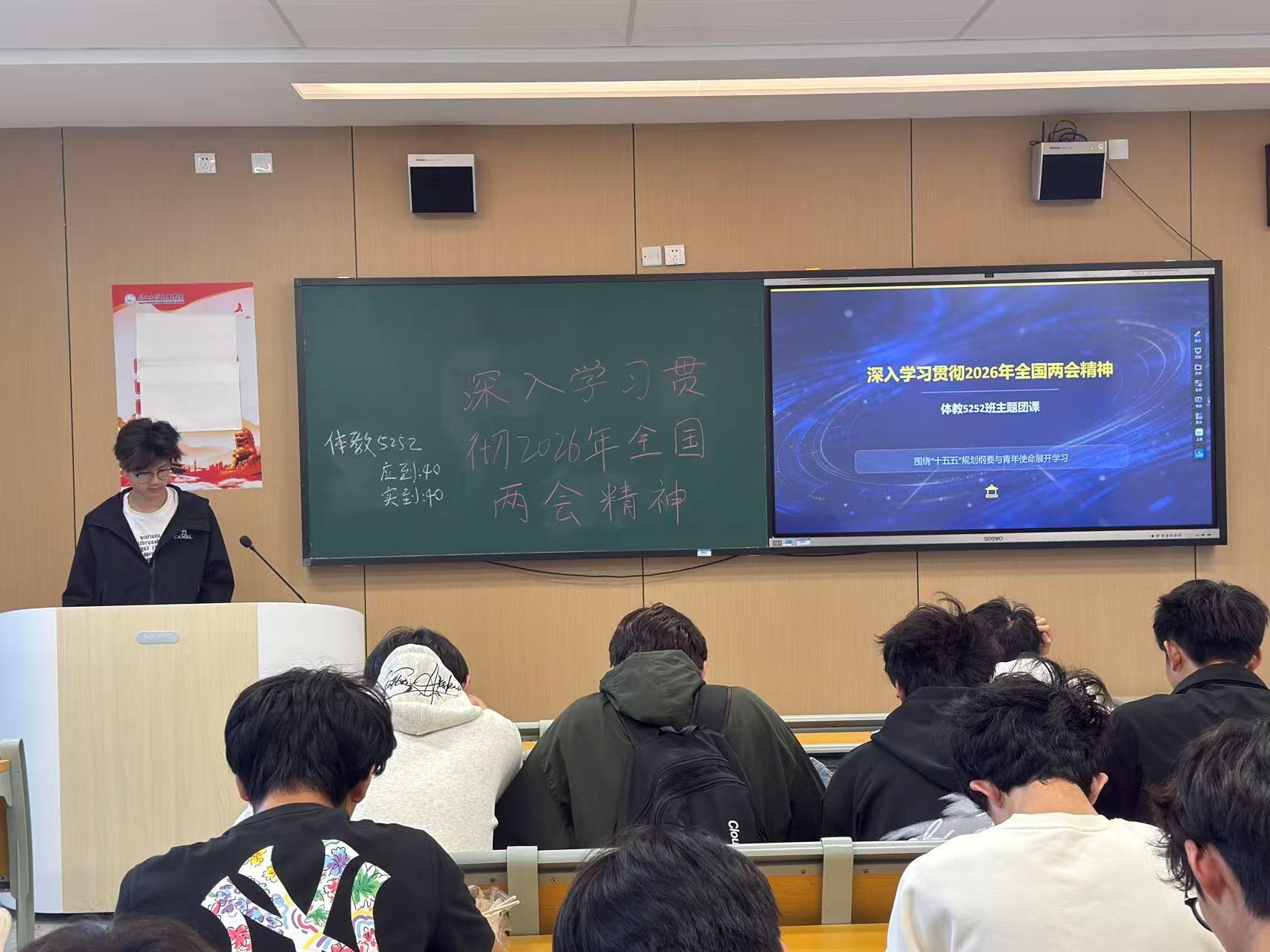 团课上,各班主讲人围绕2026年全国两会热点内容展开讲解,重点解读了政府工作报告中关于高质量发展、科技创新、民生保障等关键部署,深入阐释“十五五”规划纲要作为基本实现社会主义现代化夯实基础、全面发力关键时期的重要意义。主讲人指出,2026年是“十五五”开局之年,国家将经济增长目标设定为4.5%-5%,以改革创新为根本动力,着力构建现代化产业体系、培育新质生产力,为青年学子成长提供广阔舞台。