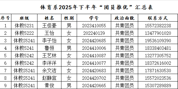 根据学院团委《关于做好2025年下半年团员“推优”工作的通知》文件要求,各团支部大会推荐,系团总支初步审核, 现将2025年下半年我系团员“推优”名单予以公示。