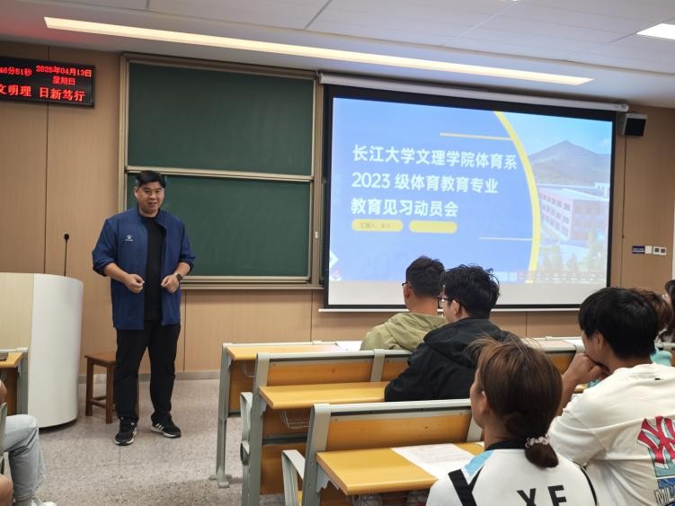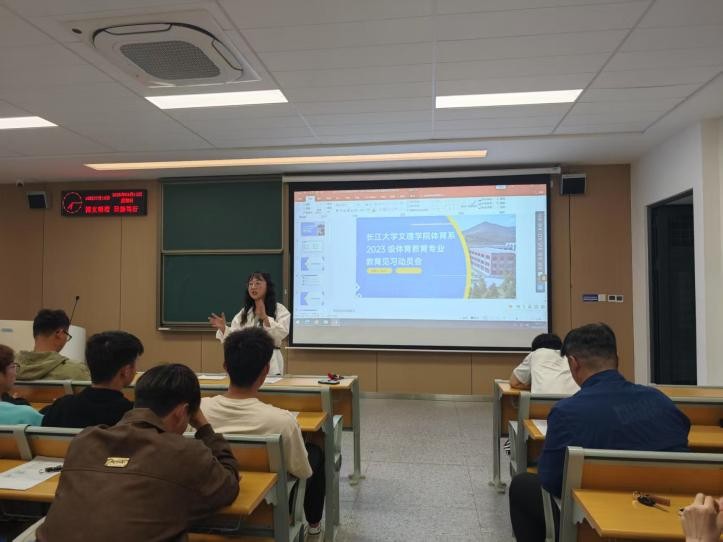 2025年4月14日晚6点,体育系2023级教育见习动员会在1教A-202顺利召开。本次动员会旨在为即将奔赴荆州市五所中小学开展教育见习的66名师范生统一思想、明确任务、鼓舞士气。院系领导、见习指导教师及全体见习生共同参会。
