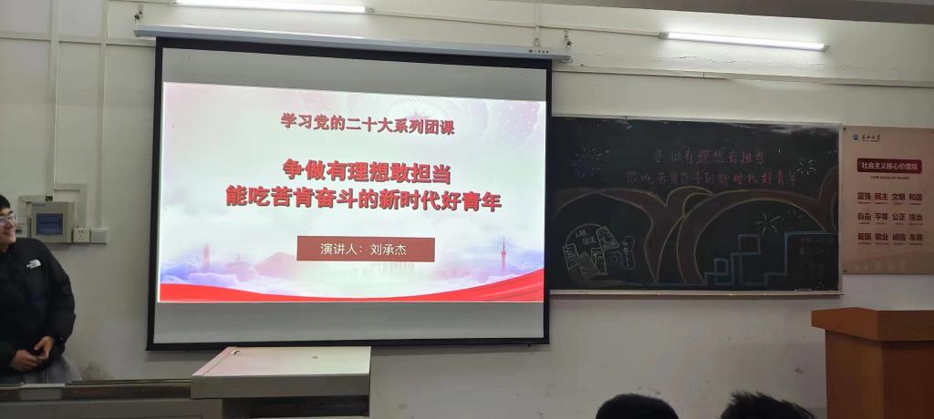 本次团课分四个篇章。第一篇章:追随理想之光;第二篇章:践行使命担当;第三篇章:嘹亮奋斗号角;第四篇章:扬起青春远航。团课中,各团支部均表态,作为新时代青年,我们必须要敢于有梦,富于理想,还要与人民同呼吸,与国家共命运。