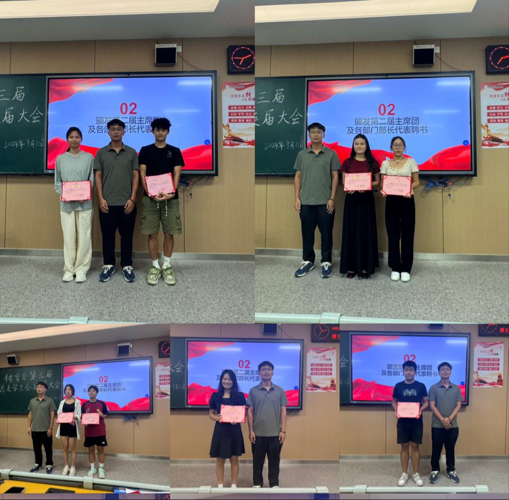 会议第二项,由门老师给第二届团总支学生会部门负责人颁发聘书。这份聘书不仅仅是他们进步的标志,更是他们荣誉的象征,以及对其能力的认可。