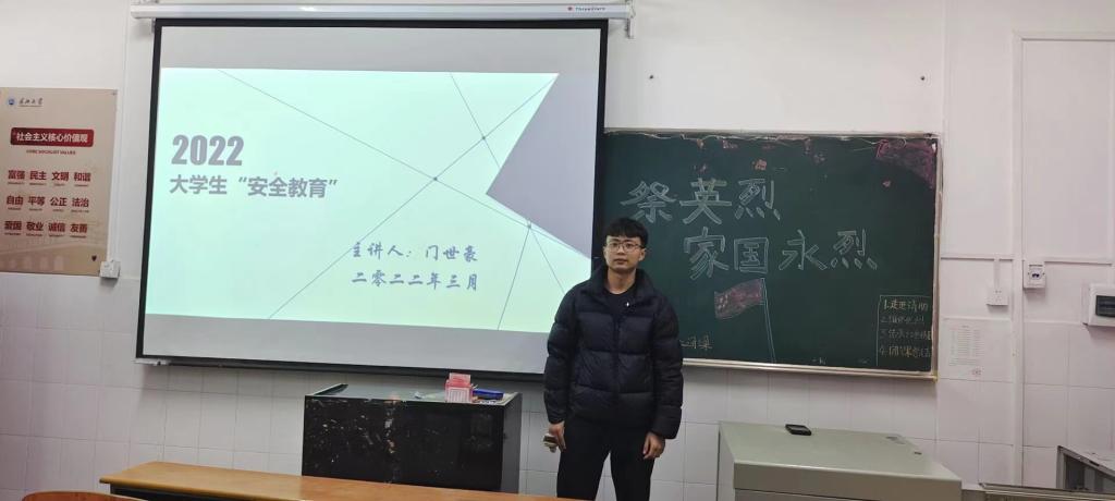3月31日晚自习,我系辅导员门世豪就学院《关于做好清明节期间学生安全教育管理工作的通知》,为切实做好 2022 年清明节期间学生 安全教育管理工作,预防各类安全事故发生,确保学生人身和财 产安全,在3教202对我系体教5211班学生开展了一场“安全教育”主题班会。