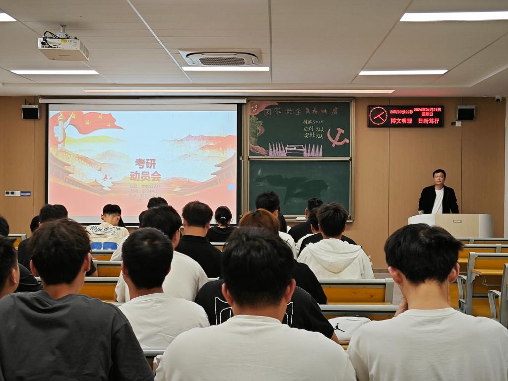 本网讯(通讯员 门世豪)421日晚,体育系在教学楼分别召开了2021级本科生、2023级专升本考研动员大会。党总支书记邹姜、主任介博前往不同班级开展了本次考研动员活动。据悉,这是我系针对2025届毕业生召开的第二次考研宣讲暨动员活动,活动开展前,体育系学生工作部门收集同学们的考研意向,听到了部分同学对“考研”拿不定主意、不了解考研政策、确定不了考研院校等声音。因此,本次活动的开展正是为了有效帮助存在以上问题的学生,为他们下定决心增添助力。
