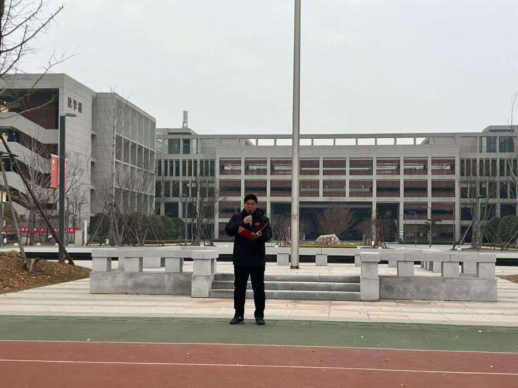 升旗结束后,学生代表尧喆豪发表了热情洋溢的讲话。他表示,作为新时代的体育学子,要时刻保持对祖国的热爱和忠诚,将个人的成长与国家的命运紧密相连,不断提升自己的体育技能和综合素质,为国家的体育事业贡献自己的力量。