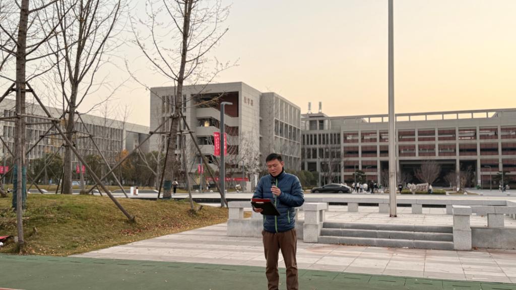 升旗仪式结束后,学生代表胡弈承以“体育精神与强国使命”为主题发表国旗下讲话。他号召全体体育学子牢记使命担当,将个人理想融入国家发展大局,以奋勇拼搏为笔,以坚韧不拔为墨,在体育道路上勇攀高峰,用实际行动书写爱国华章,让体育精神成为青春最亮丽的底色。