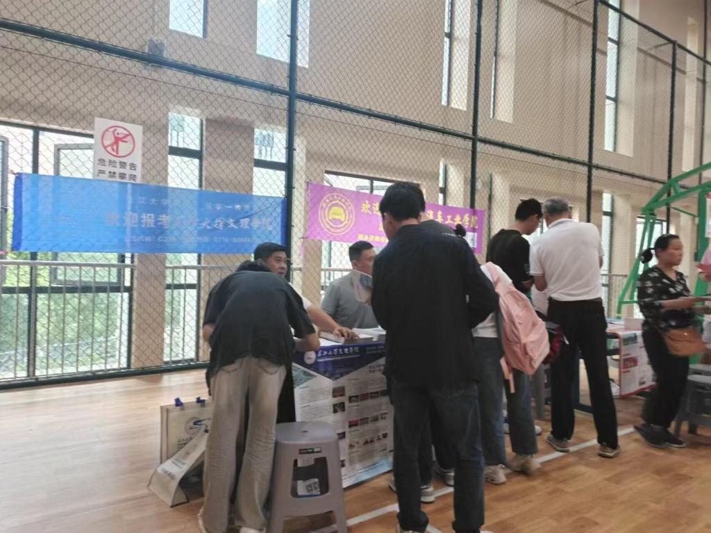 本网讯 6月29日,体育系党总支书记和主任一同来到五峰县土家族自治区高级中学参加招生咨询现场会。会场集聚了今年毕业的高三学生,咨询现场各高校宣传场面火爆。